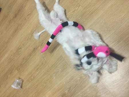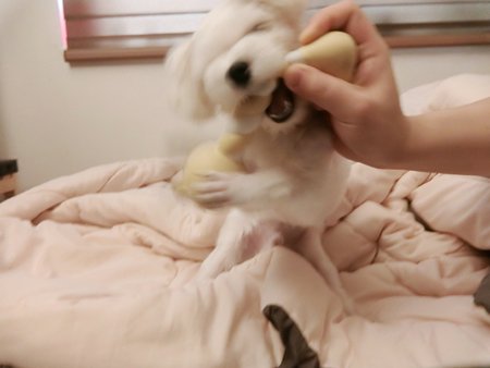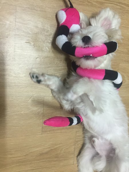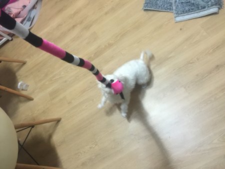 당당하게 달려가서 물어서 나한테 가지고 오더니 주지 않고 개껌처럼 뜯...