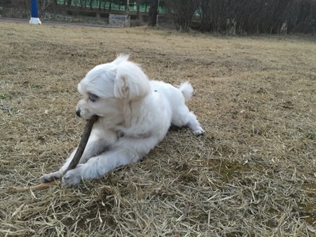 산책할때 혹시나 하는 마음에 나뭇가지를 던졌다