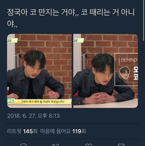 이거 본방 볼때는 뭔가 평소 꾹이답지않게 스킨쉽이 많다 숨은 애교가 다있었네 이런 생각은 했었는데 그게다 미션때문일줄이야 ㅋㅋ
