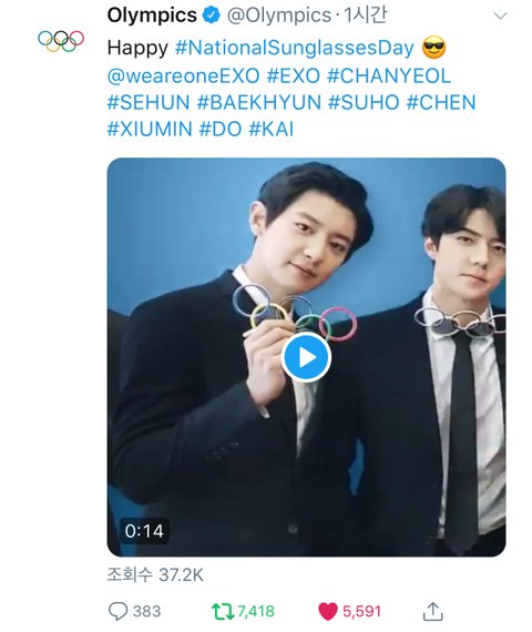 올림픽 계정에서 또 엑소 올려줌