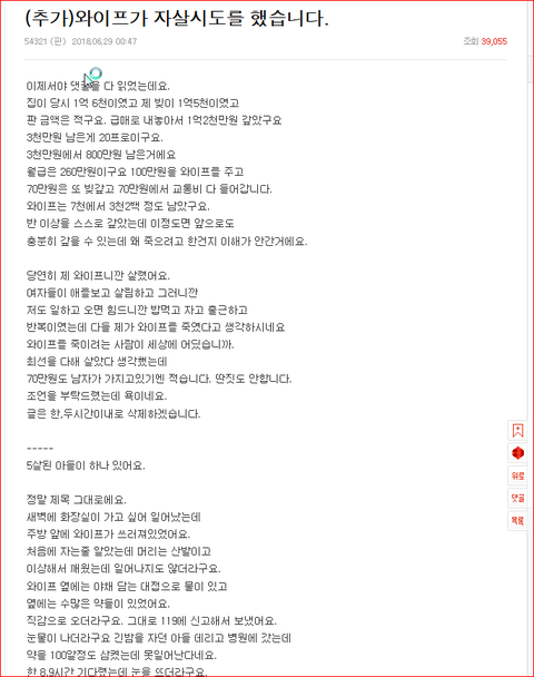 (원글캡처) 와이프가 자살시도를 했습니다