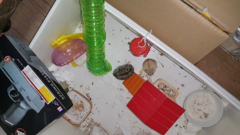 탈출해서 나가다가 북문이 하고 홈플이 햄스터가 있는 박스안으로 떨어진거같네..