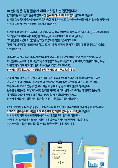 서로 사랑하고 용서하라 했건만,참된 신앙인이라면 말씀따라 이리 행하며 살아야 하건만,이단이라 정죄하며, 핍박하고, 저주하고, 심지어 신천지 아웃을 외치며전쟁을 선포한 한기총!