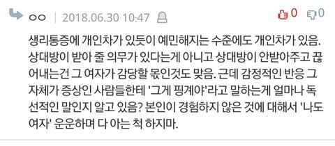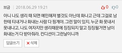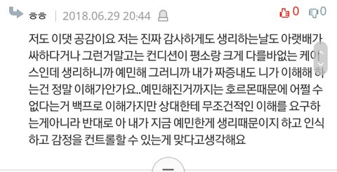 지금 현재 생리 때문에 예민해진다는 글에