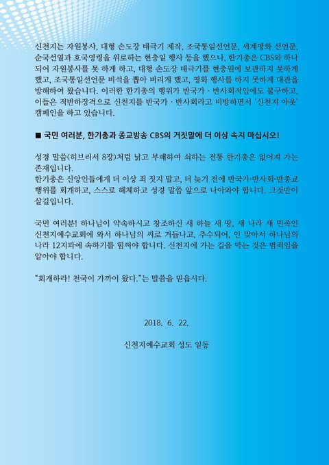부패하고 낡은 전통교단 한기총을 거짓됨을 고발 합니다