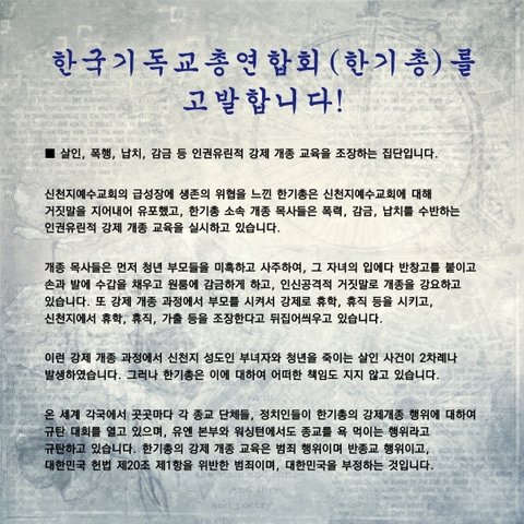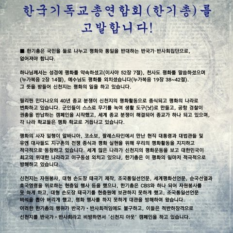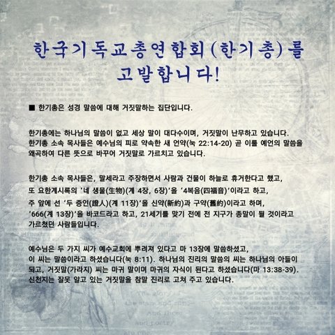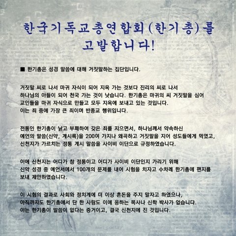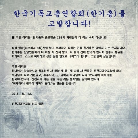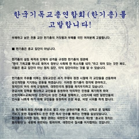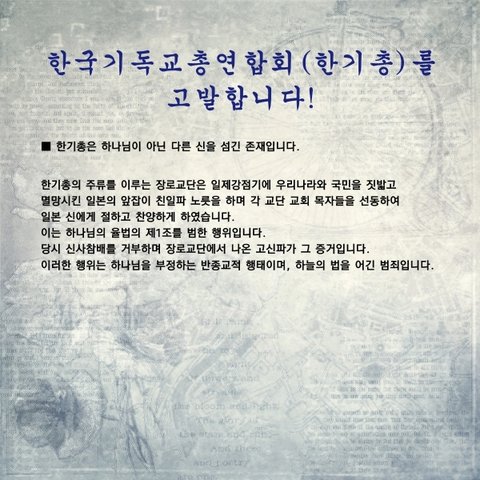부패하고 낡은 전통교단 한기총을 거짓됨을 고발 합니다