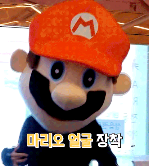 끙차 들어서 마리오탈 쓰고
