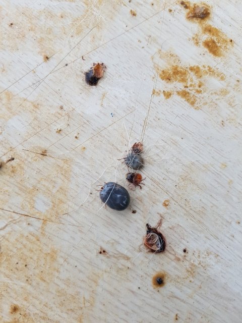 온몸에 진드기가 득실거려 급한대로 비를 맞으며 떼어 줬는데도 아직도 더 떼야합니다..