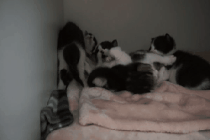 얼룩덜룩이는 독방으로 가고 나머지 새끼들은 담요 갈아줌