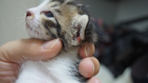 새끼고양이들 발톱이 걸리고 미소가 긁고 그래서