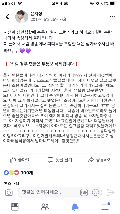 윤지성 십만십때 실력논란
