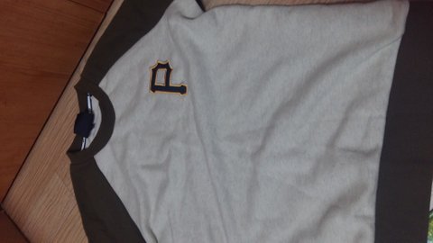 받은 옷인데 진한 베이지색에 팔만 초록색이랑 갈색이랑 섞어놓은 색인거