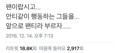팬티 = 팬이랍시고 안티질 하는 것들