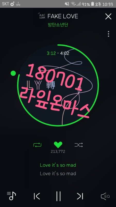갑자기 페이크러브 뮤비 살짝 스쳐지나가고 노래나왔어ㅋㅋㅋㅋㅋ초록창 반응도 좋네ㅋㅋㅋㅋ
