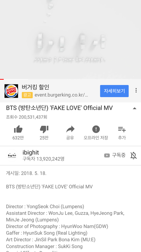 거짓사랑 뮤비 2억뷰 돌파!