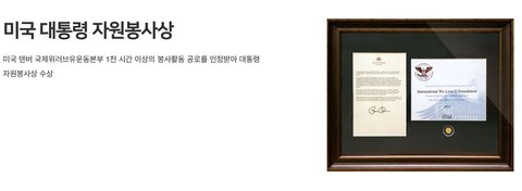 국제위러브유운동본부 장길자회장님의 미국대통령 자원봉사상