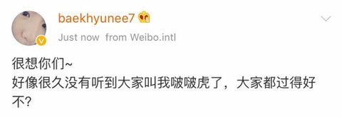 여러분 엄청 보고싶어요~ 여러분들이 저를 뽀뽀후라고 불러주시는 걸 아마 오랫동안 못 들어본거 같아요 여러분 모두 잘 지냈어요? 너무 스윗해 백현