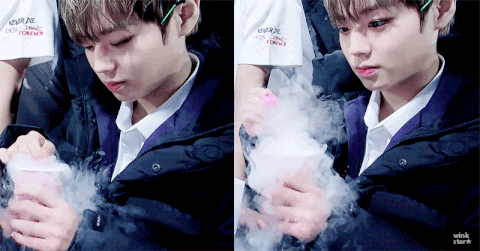 박지훈 팬콘에서 아이스크림 사면 같이주는 드라이 아이스 연기 가지고 놀면서 아이스크림 냠 먹는거 너무 귀엽고 멍뭉이 같아서 움짤로 가져와봤어