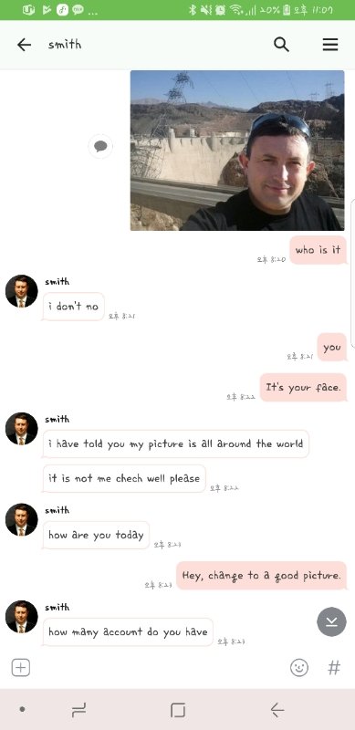 본인(외국인사기꾼) 사진 인터넷에서 퍼와도 모른다고함ㅋ 그러더니 자기사진 인터넷에 돌아다닌다함