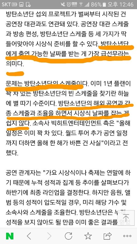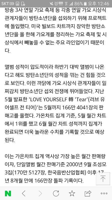 방금 네이버 랭킹기사에서 연말시상식에 방탄 섭외하려고 전쟁이라는 기사봤는데 뭔가 자랑스럽고 뿌듯해서 글씀.방탄소년단한테 출연가능한 일정을 받는다니ㅋㅋㅋ내새끼 꼬질꼬질했을때도 있었는데 이렇게 컸어.무시도 많이당하고 욕도많이먹었는데 이렇게 버티면서 여기까지와준게 너무 고맙다.성적에 연연하는팬은 아니지만 갑자기 너무 뿌듯해서ㅎ...