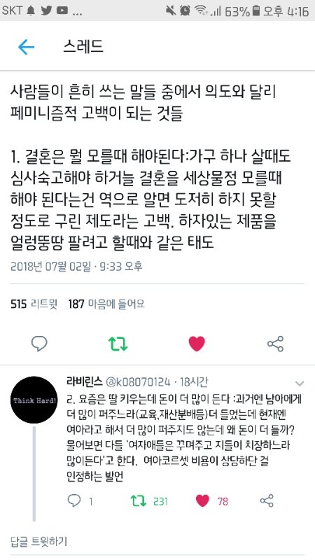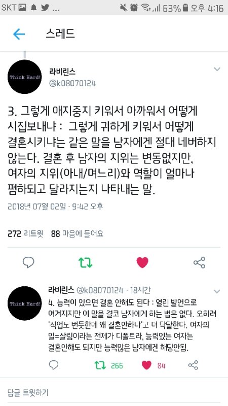 판 은근 페미니즘적 얘기 많이함