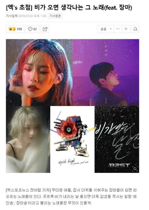 비가 오면 생각나는 노래 기사에