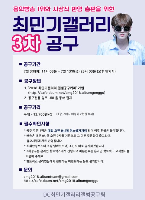 타싸럽인데, 밍갤에서 음방이랑 시상식 대비 총판을 위해 3차 공구 시작했어. 팬톡에는 아직 안올라왔길래 두고 갈게. 혹시 문제 있으면 댓 남겨줘.