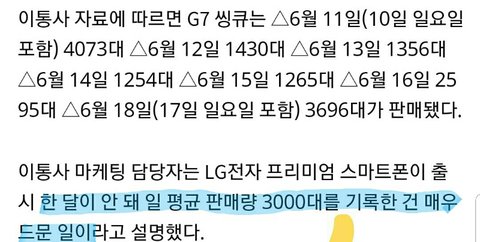방탄소년단을 모델로하고 급격히 LG G7 판매량이 역대급으로 심각하게 떨어짐....;; 이유: 모델이 구려서