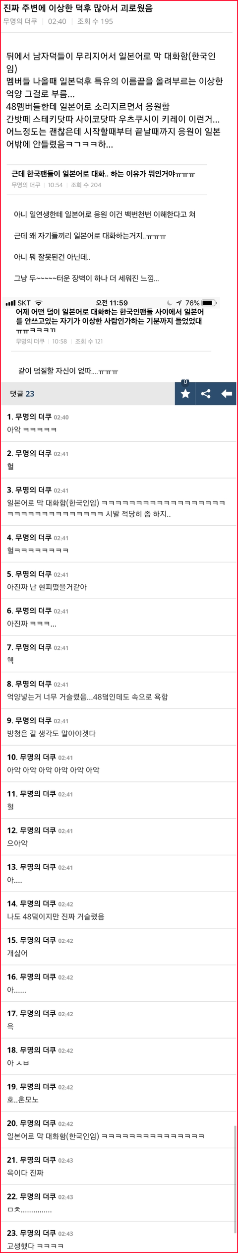 한국 멤버들은 일본인들에 비해 분량도 별로 없다고 함