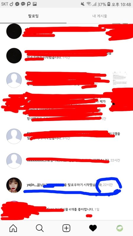 인스타 계정으로 팔로우된 거 도용이라고 하는 사람있어서 수정할게 저 새로운 팔로잉 알람은 내가 그 분 계정 팔로우 해둬서 뜬 거라 도용일 수가 없어! 아이디도 똑같구..