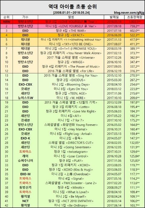 1. 방탄소년단 초동 100만 돌파