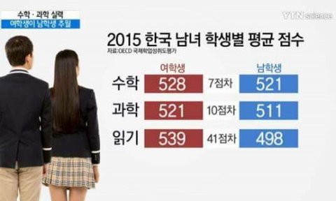 한국남녀 성별 학생별평균 점수