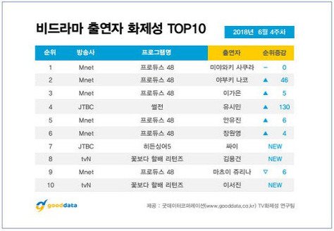 비드라마 부문 화제성 프듀48이 전부 차지했어