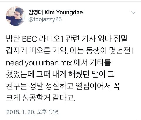 음악 평론가 김영대님의 방탄소년단 언급