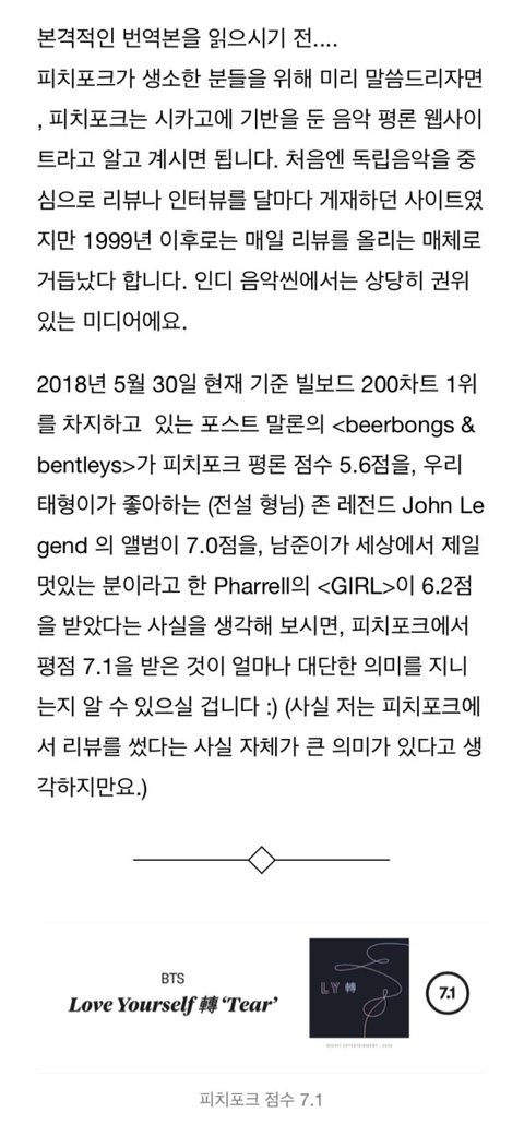 방탄소년단 정규3집 LOVE YOURSELF 轉 ‘Tear’ 에 대한 피치포크의 앨범 평론