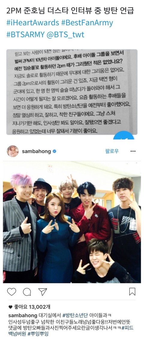 2pm 준호님, 홍진영님 방탄소년단 언급