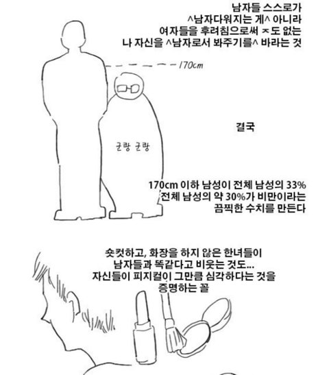 아니 솔직히 한남들은 여자들이 미용에 신경쓸 동안 그 돈 모으거나 주식투자하거나 자기계발에 더 쓰는데 여자들은 연예인할것도 아니면서...