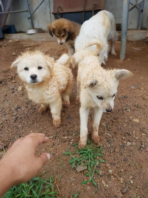 3개월 꼬마들이 내리는 비를 온몸으로 겯디기엔 역부족이였습니다.