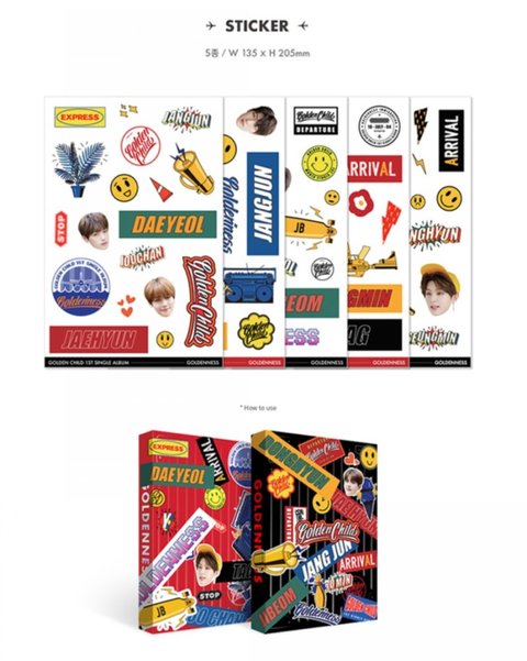 (위) 골든차일드의 [Goldenness]에 포함된 앨범 겉면을 꾸밀 수 있게 나온 스티커. 위 사진인 갓세븐과 같은 아이디어다.
