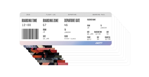 (위) 갓세븐의 flight log : departure 에 포함된 비행 티켓을 연상케 하는 포토티켓.