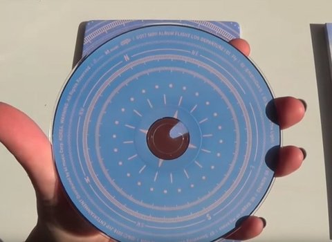 2016년 3월 21일에 발매된 갓세븐의 [flight log : departure]의 CD롬 사진이다. 당시 출시된 시리즈 첫 앨범이며, flight log(비행 일지)를 상징하는 나침반의 모습을 하고 있다.