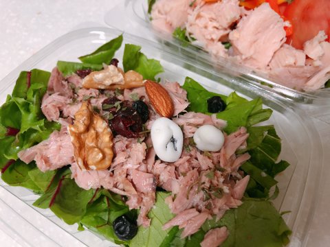 참치통조림 기름 쭉 빼고, 하루견과 한 봉지 투하.