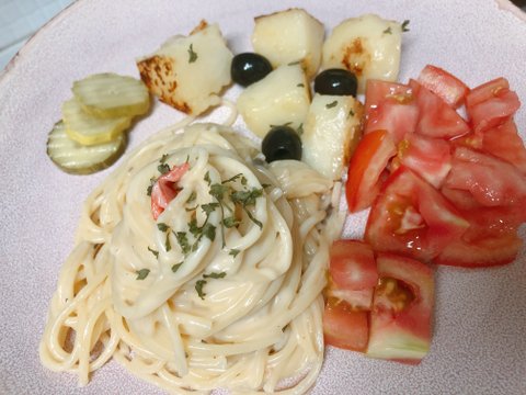 야밤에 혼자 만들어먹은 크림파스타..
