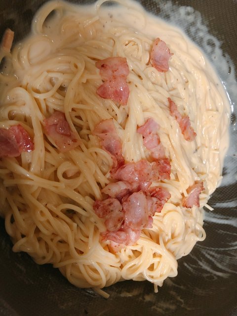 심지어 크림 파스타에 베이컨 듬뿍 넣었네..