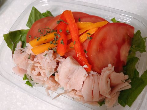 풀떼기들 위에 닭가슴살 통조림을 올려봤다.