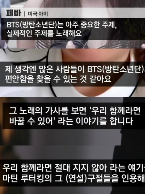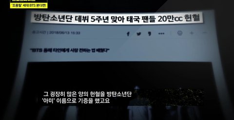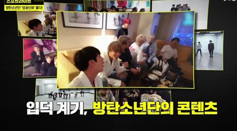나도 그 프로그램 내용은 가볍지만 어쨋든 다른 프로보단 다양한 방면으로 내용을 검증했고, 진행자인 이규연씨가 이해할 수 있는 정도의 수준에서 정리 잘 했다고 생각해. 팬인 우리한텐 별 거 없는데 그렇게 예고 때리고 오바한거야 싶기도 한데(인터뷰한 분 말 들어보면 인터뷰 내용 거의 안 나갔다고 하고) 딱 방탄이 왜 인기있어? 라고 물어보는 사람들이 이해하기 좋은 정도
