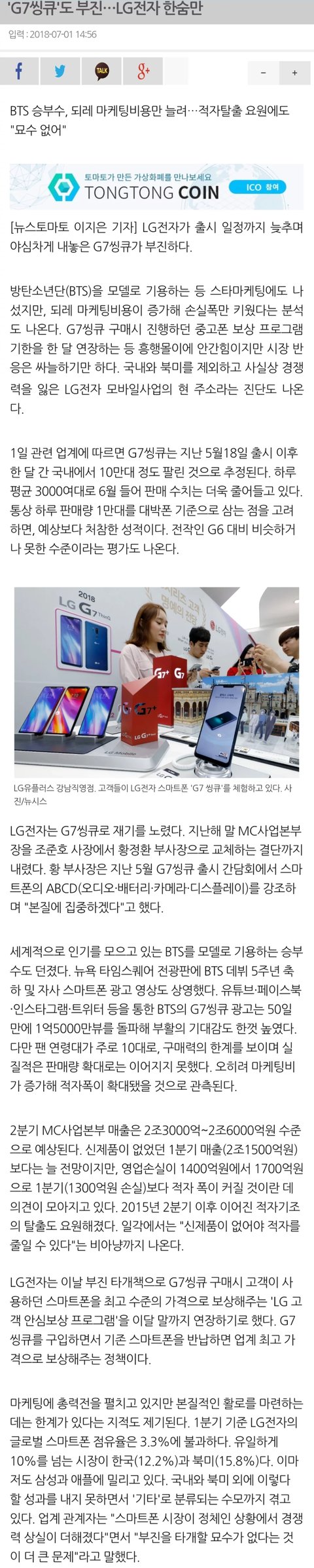미국반응에 혹해서 방탄소년단 모델로 썼다가 대중반응, 판매량 모두 최악이라고 기사 뜸.