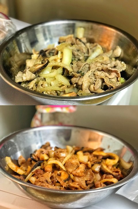 고기 사다가 간장양념 고추장 양념 해서 재워 뒀다가