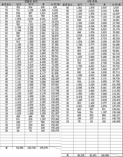 사탐에서 선택자수 상위 2개 뽑았다.