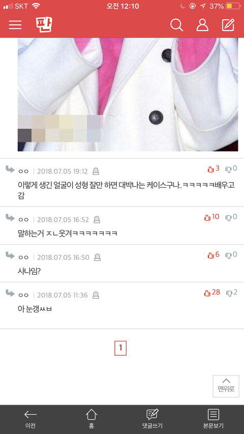 외모비하 ㅈㄴ아무렇지도 않게함 심지어 옹호하는 댓글에 추천수가 더 많음 진짜 개소름돋네 .. 저런 말 하는 애들하고 같은 나라에 살고있다는게 기분나쁠정도 ㅋㅋ